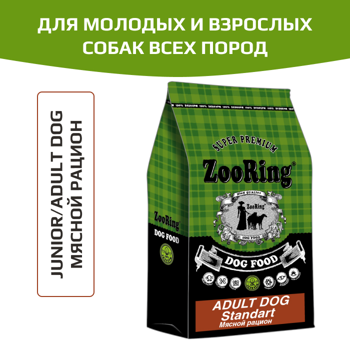ZooRing Adult Dog Standart корм сухой для молодых и взрослых собак всех пород, которым требуется пониженное содержание протеина и жира, мясной рацион.