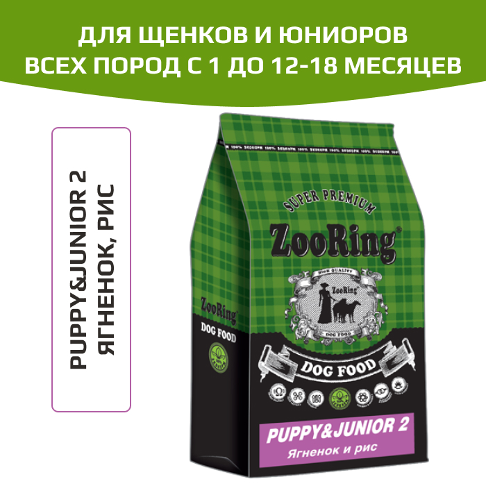 ZooRing Puppy&Junior 2 корм сухой для щенков и юниоров всех пород с 1 до 12-18 месяцев, склонных к аллергии, страдающих плохим пищеварением, ягненок.