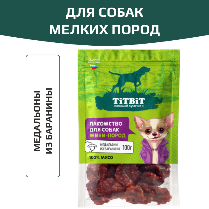 TiTBiT лакомство для собак мелких пород Медальоны из баранины, для поощрения, для дрессуры, для игр.
