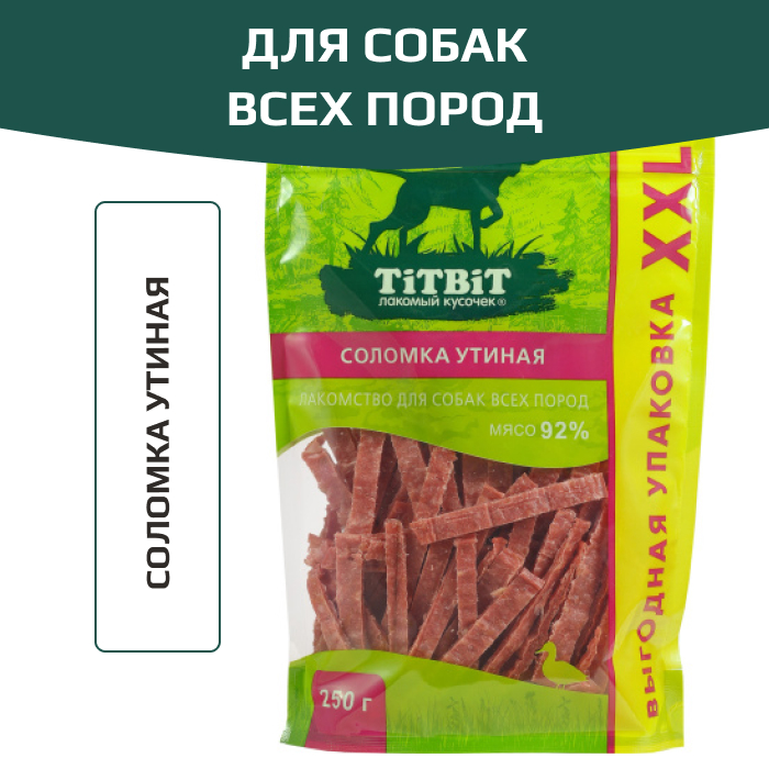 TiTBiT лакомство для собак Соломка утиная, для поощрения.