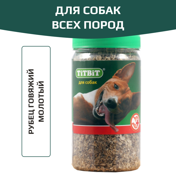 Молотый сушеный говяжий рубец. Прекрасная витаминно-ферментная подкормка. Содержит легкоусвояемый белок, ферменты и витамины микрофлоры желудка жвачных животных. Рубец говяжий представляет собой часть желудка КРС, точнее - первый из его преджелудков, в котором содержится полезная микрофлора. Ворсинки неочищенного сушёного рубца сохраняют на себе ферменты и витамины группы «В», вырабатываемые его микрофлорой при жизни животного. Содержат низкокалорийный, легкоусвояемый белок. Благодаря особой технологии сушки сохраняется до 60% процентов полезных веществ. Рекомендуется как добавка к пище для привередливых собак. Используется для профилактики ферментной и витаминной недостаточности и диспепсических расстройств у собак всех пород и возрастов. Регулярное поедание рубца насыщает организм ферментами, макро- и микроэлементами, недостаток которых собака пытается восполнить, отыскивая на прогулках и поедая разные «пикантности» (отбросы и фекалии).