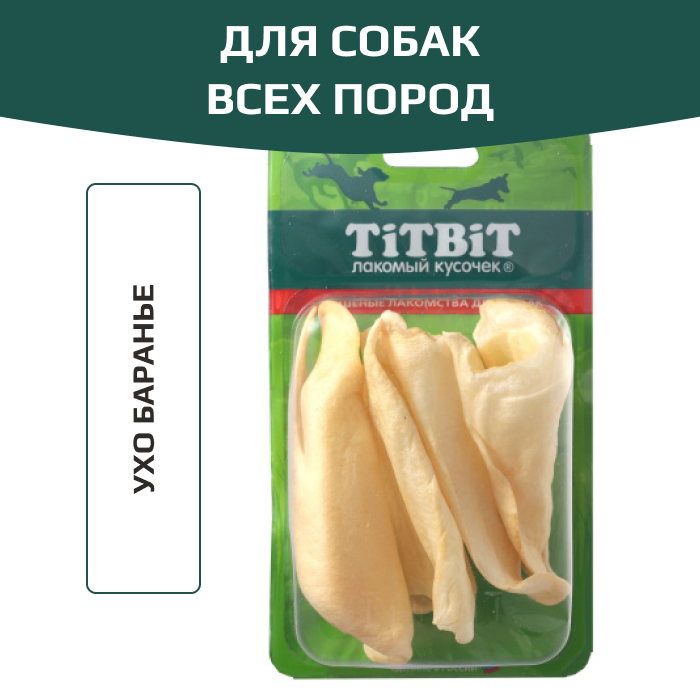 TiTBiT лакомство для собак всех пород, ухо баранье.