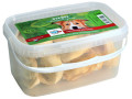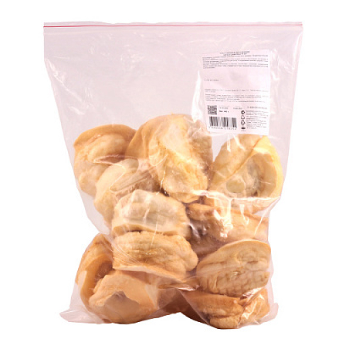 Высушенные основания говяжьих ушей (внутренняя часть раковины, обрамленная кольцом мышечной ткани). Высокое содержание коллагеновых и эластиновых волокон обеспечивает поступление в организм незаменимых компонентов для роста и поддержания качества хрящевой ткани суставов Вашего питомца. Рекомендовано с 1,5 – 2 месяцев с целью облегчения смены зубов у щенков, укрепления десен, очистки зубов от пищевого налета и зубного камня, дополнительного питания и укрепления хрящевой ткани собак среднего и старшего возраста. Высокое содержание коллагена и эластина способствует улучшению формирования ушного хряща для пород собак, стандартом которых предусмотрен вертикальный постав ушной раковины.
