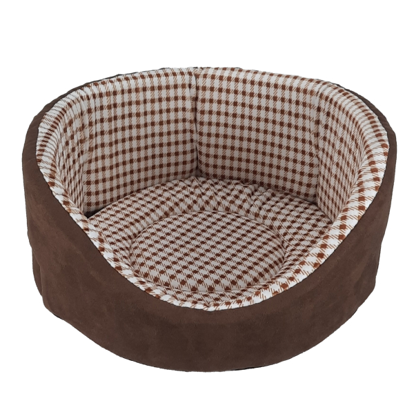 Классический круглый лежак четырех размеров из приятной и практичной ткани.
