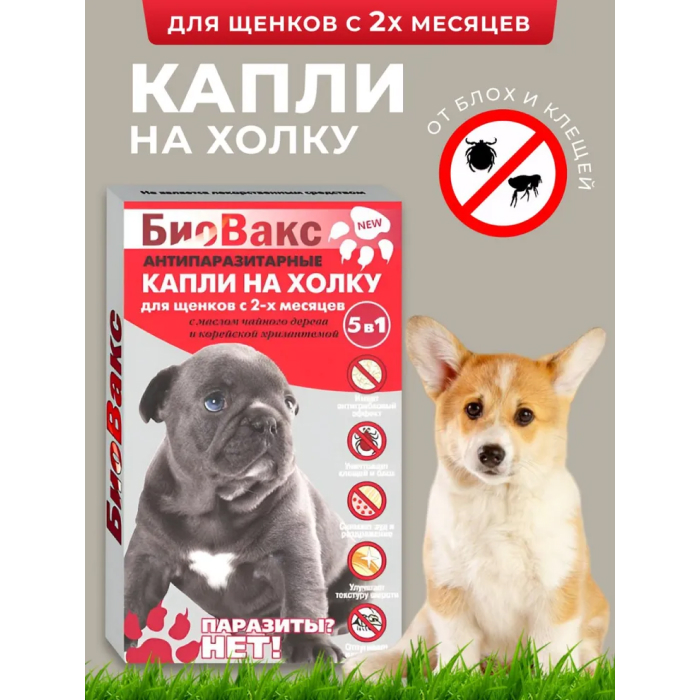 БиоВакс капли на холку для щенков антипаразитарные 2 пипетки.