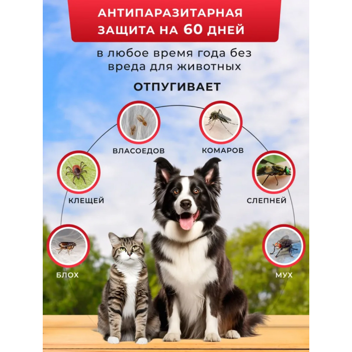 Эфиры корейской хризантемы и корицы, являющиеся природными репеллентами, вызывают мгновенный паралич у клещей и блох, совершая нокдаун-эффект. Масло чайного дерева не только отпугивает вшей и власоедов, но несет в себе антисептический и антигрибковый эффекты. Эфирные масла и экстракты, постепенно попадая на кожу Вашей собаки, парализуют нервную систему насекомых. Масло чайного дерева и календула не только снимают раздражение и зуд, вызванные укусами насекомых, но и улучшают текстуру шерсти, делая ее блестящей. Ношение ошейников "Биовакс" рекомендуется как на природе, так и в жилищах. Тем самым ваша собака и ваша квартира будут защищены от насекомых. Биоошейник можно использовать для щенков с 2-х месячного возраста. Длина 35 см.