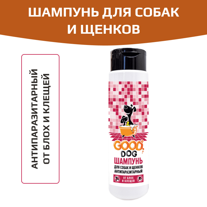 GOOD Dog Шампунь Антипаразитарный для щенков и собак от блох и клещей.