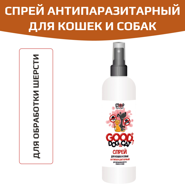 GOOD Dog&Cat Спрей для кошек и собак STOPПАРАЗИТ, для обработки шерсти.