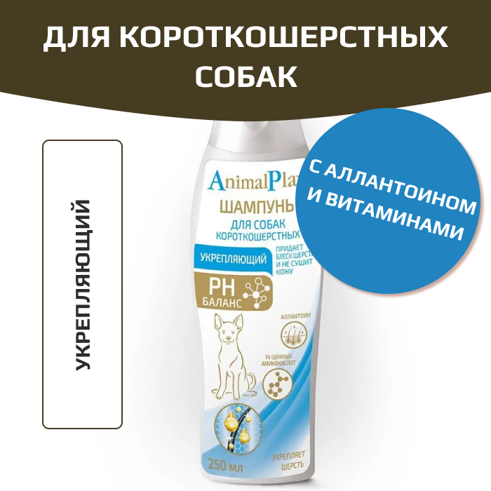 AnimalPlay Шампунь Укрепляющий с аллантоином и витаминами для короткошерстных собак 250мл.