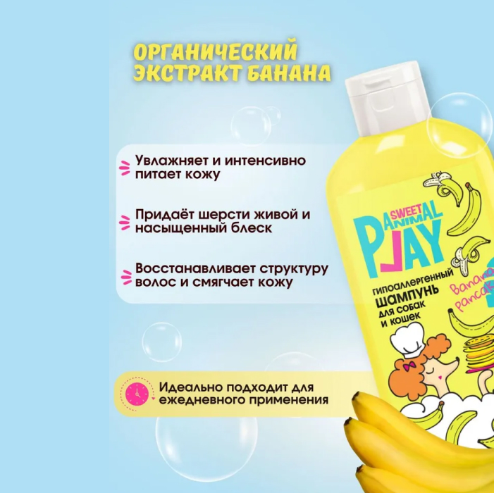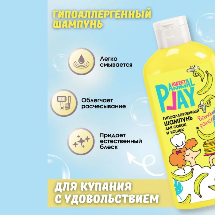 AnimalPlay sweet Шампунь Банановый панкейк гипоаллергенный для собак 300мл.