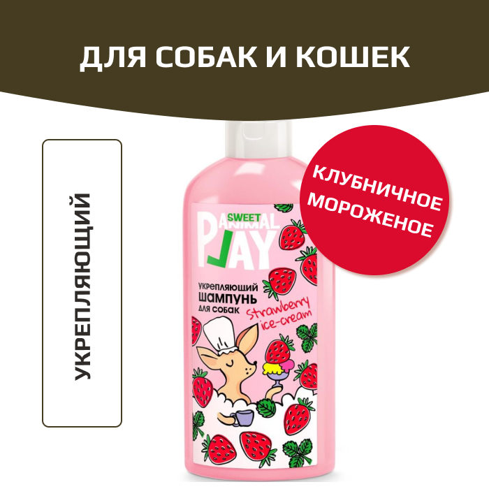 Шампунь укрепляющий для собак и кошек «КЛУБНИЧНОЕ МОРОЖЕНОЕ». Натуральная косметика с восхитительными ароматами изысканных десертов!