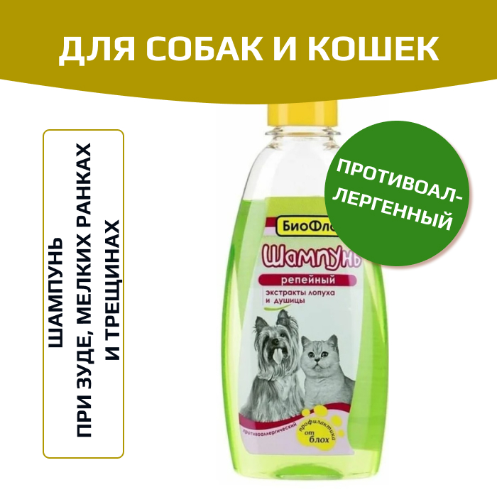 БиоФлор Шампунь Репейный противоаллергенный для кошек и собак.