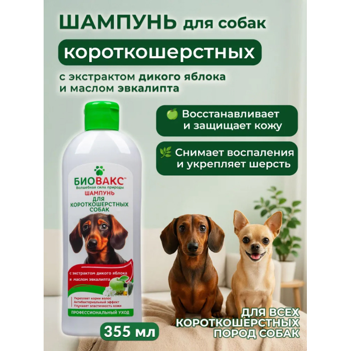 БиоВакс Шампунь для короткошерстных собак 355мл.