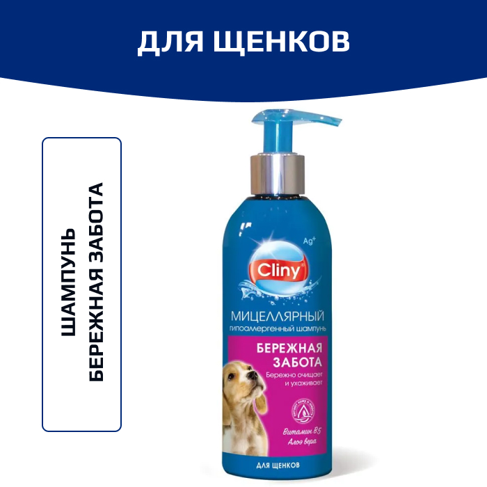 Cliny шампунь для щенков создан для бережного ухода за кожно-волосяным покровом.