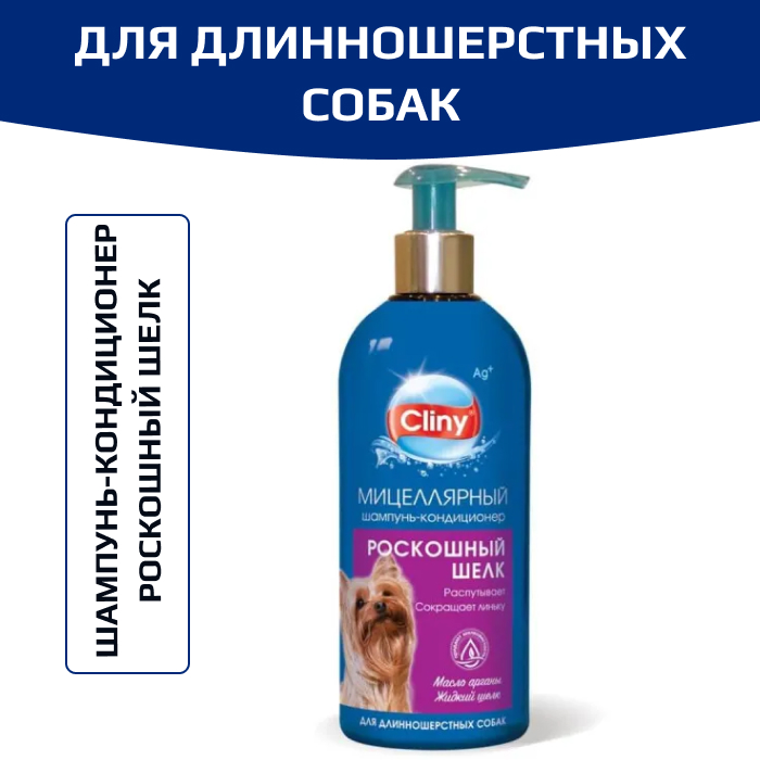 Cliny Шампунь-кондиционер Роскошный шелк для длинношерстных собак 300мл.