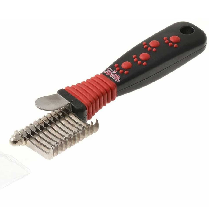 Колтунорез Hello Pet с прямыми лезвиями предназначен для удаления колтунов у кошек и собак мелких пород. Лезвия изготовлены из высококачественной нержавеющей стали, которая обеспечивает долгий срок службы изделия. Они имеют специально заточенные зазубренные края, которые позволяют легко удалить колтуны и минимизируют срезание шерсти. Эргономичная ручка, выполненная из пластика с прорезиненными вставками, оснащена упором для большого пальца. Количество лезвий: 11 шт.