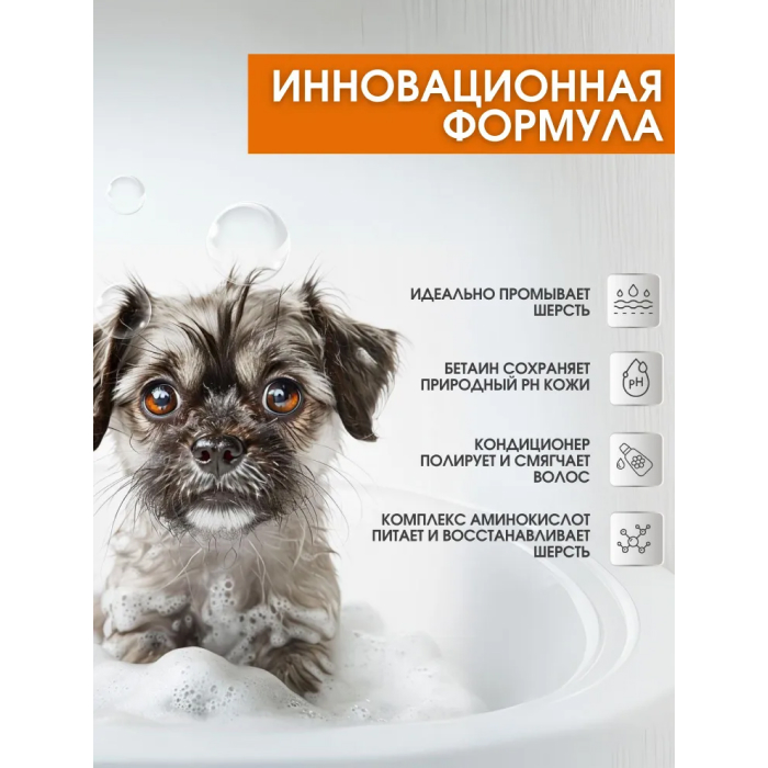 Рекомендации по использованию: нанести шампунь на влажную шерсть, вспенить, затем смыть.