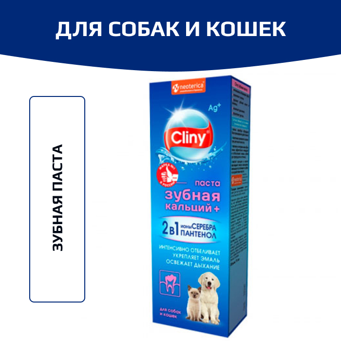 Зубную пасту Cliny (75 мл) применяют для чистки зубов и ухода за полостью рта собак и кошек. Паста не пенится и не требует смывания, безопасна при проглатывании. Паста отбеливает и укрепляет эмаль зубов и удаляет зубной налет и камень. К тому же освежает дыхание питомца, снимает воспаление и укрепляет десны.