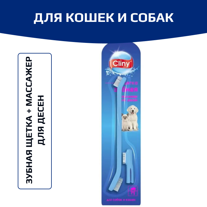 Cliny зубная щётка плюс массажёр для дёсен для кошек и собак.