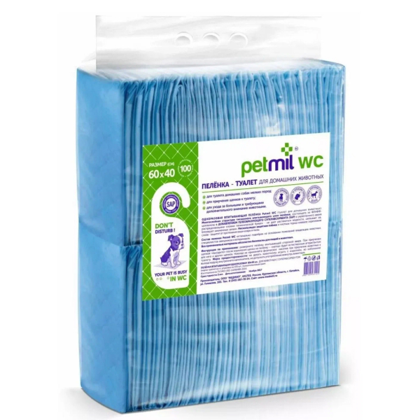 Впитывающие одноразовые пеленки-туалеты для домашних животных Petmil WC – это оптимально сбалансированная по категориям цена-качество пеленка с суперабсорбирующим полимером, созданная по рекомендациям специалистов – заводчиков. PETMIL WC - наша классическая «гелевая» пеленка-туалет c 6-ти слойной конструкцией, содержит современный суперабсорбирующий полимер (SAP), активно связывает жидкости и превращает их в мягкие гелевые кристаллы, блокирует развитие бактериальной флоры и появление резких запахов. Рисунок тиснения не даёт сбиваться впитывающему слою и, одновременно, служит каналами для быстрого достижения жидкостью «свободного» суперабсорбирующего полимера. Пеленка-туалет Petmil WC «работает» до 2-3 дней без замены! (зависит от размера животного). Конструкция: 6-ти слойная (с добавлением САП).