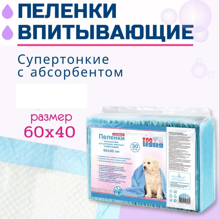 Zoo Няня Гелевые пеленки тонкие 60х40.