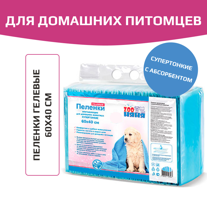 Пеленки ЗОО Няня предназначены для ухода за домашнимиживотными для приучения к туалетному лотку. Пеленки прекрасно впитывают влагу.Незаменимы в первые месяцы жизни щенков,котят,а также на выставках, приеме у ветеринара,после операций, в период лактации.
