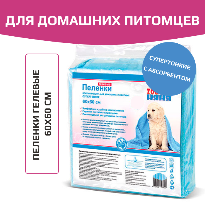 Пеленки ЗОО Няня предназначены для ухода за домашнимиживотными для приучения к туалетному лотку. Пеленки прекрасно впитывают влагу.Незаменимы в первые месяцы жизни щенков,котят,а также на выставках, приеме у ветеринара,после операций, в период лактации.