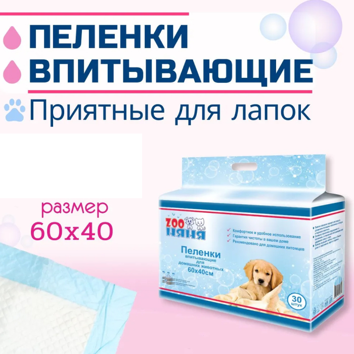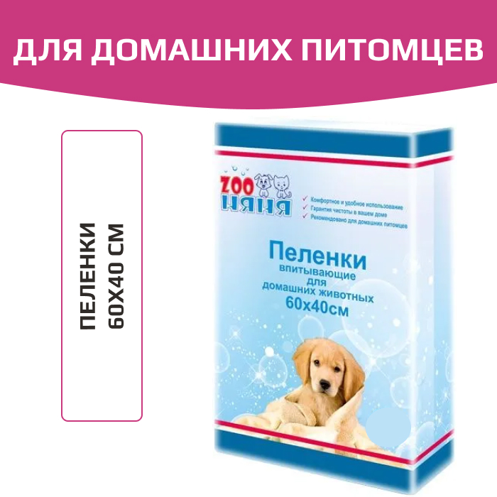 Zoo Няня пеленки одноразовые, гигиенические, 60х40.
