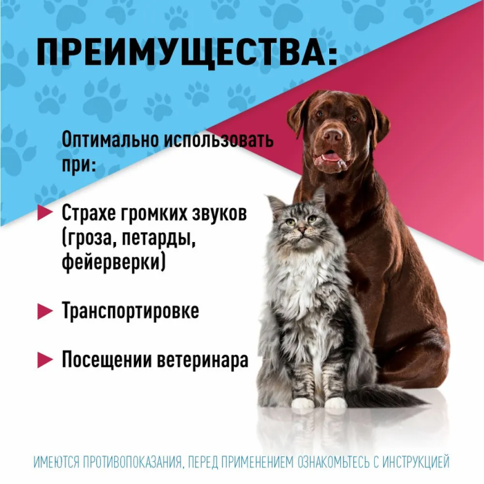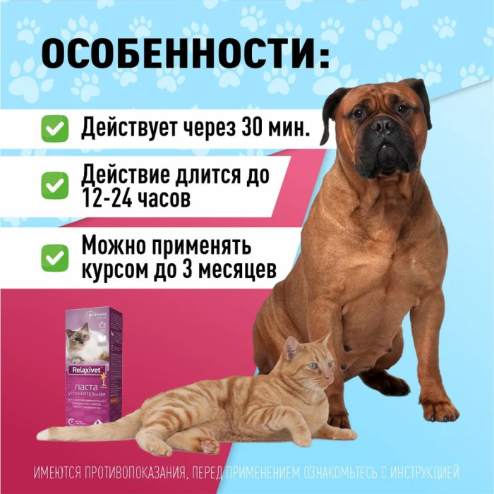 Когда питомцы нервничают, они начинают плохо себя вести: постоянно мяукают или лают, портят мебель и оставляют метки, проявляют агрессию или пугливость. Решить проблемы и успокоить питомца помогут натуральные средства Relaxivet. Успокоительная паста Relaxivet на основе аминокислот — новое слово в современной ветеринарии.