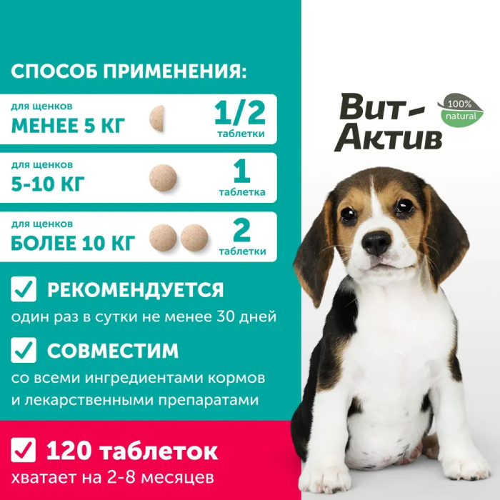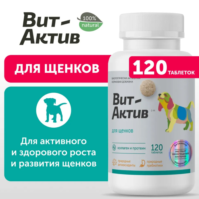 Вит-Актив Для щенков биологически активная кормовая добавка, 120 таб.