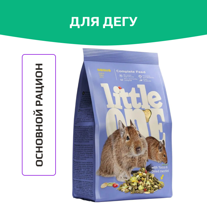 Суточная доза корма Little One для дегу составляет 20-25 г на зверька. Следите, чтобы у дегу всегда была свежая вода. Помните, что у дегу всегда должно быть сено. Этот важный источник клетчатки является необходимым для пищеварения и правильного обмена веществ дегу.