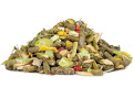 Травяные гранулы Овес плющеный Ячмень плющеный Горох плющеный Морковь сушеная Плоды рожкового дерева (кэроб) Хлопья кукурузные Кукуруза красная Мультизерновые гранулы Яблоко сушеное (1,5%) Люцерна сушеная Фруктоолигосахариды (1,3%) Экстракт юкки (0,01%).