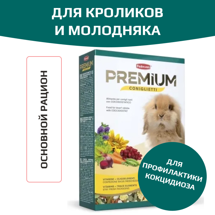 Комплексный корм с кокцидиостатиком для декоративных кроликов.