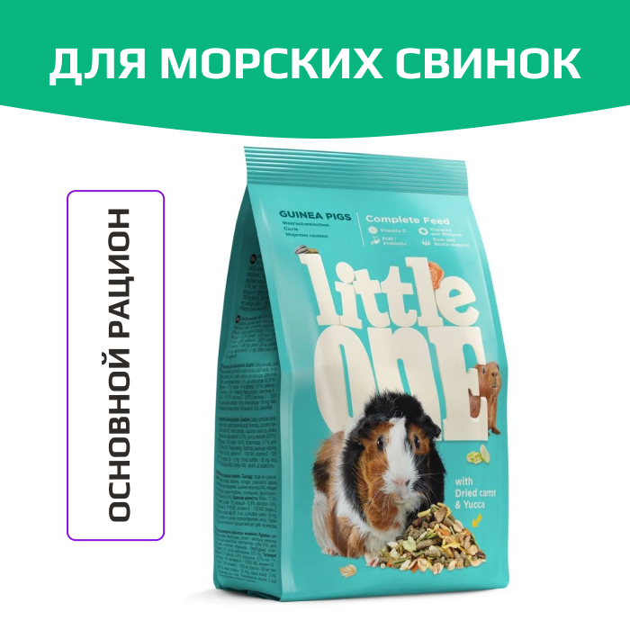 Суточная доза корма Little One для морских свинок составляет 35-50 г на зверька в зависимости от его размера. Кормите свинку два раза в день в одно и то же время. Следите, чтобы у морской свинки всегда была свежая вода. Помните, что любые зерновые корма следует сочетать со свежими продуктами. Морским свинкам необходима свежая зелень, фрукты и овощи. Помните, что у морских свинок всегда должно быть сено. Этот важный источник клетчатки для морских свинок.