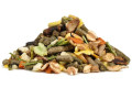 Травяные гранулы Пшеница воздушная Ячмень плющеный Ячмень воздушный Плоды рожкового дерева (кэроб) Овес плющеный Кукуруза воздушная Горох плющеный Хлопья кукурузные Люпин сладкий плющеный Морковь сушёная (4%) Люцерна сушеная Семена подсолнечника Фруктоолигосахариды (1,5%) Экстракт юкки (0,01%).