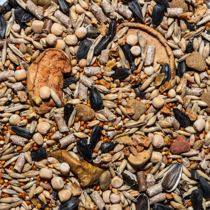Семена луговых трав просо овес и др. злаковые семена подсолнечника травяные гранулы гранулы содержащие белки животного происхождения сухие овощи и фрукты другие добавки растительного происхождения.