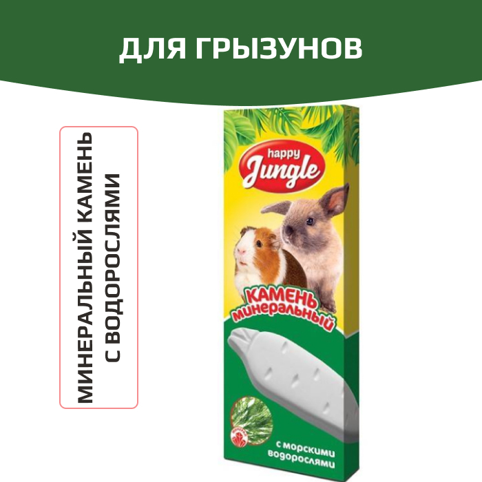 HAPPY JUNGLE Минеральный камень для грызунов с водорослями.