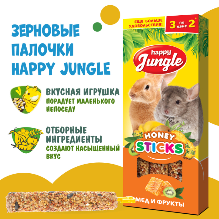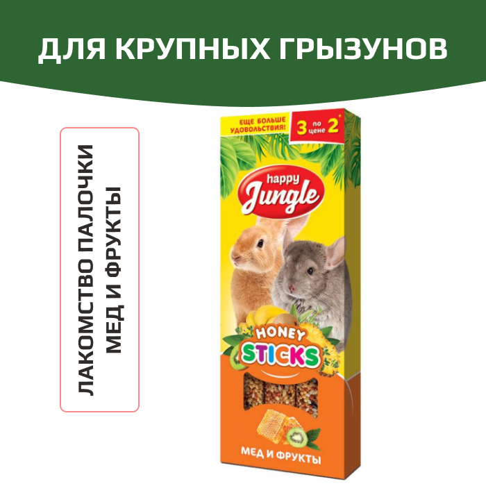 HAPPY JUNGLE Палочки для крупных грызунов мед+фрукты 3 шт.