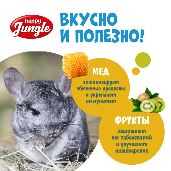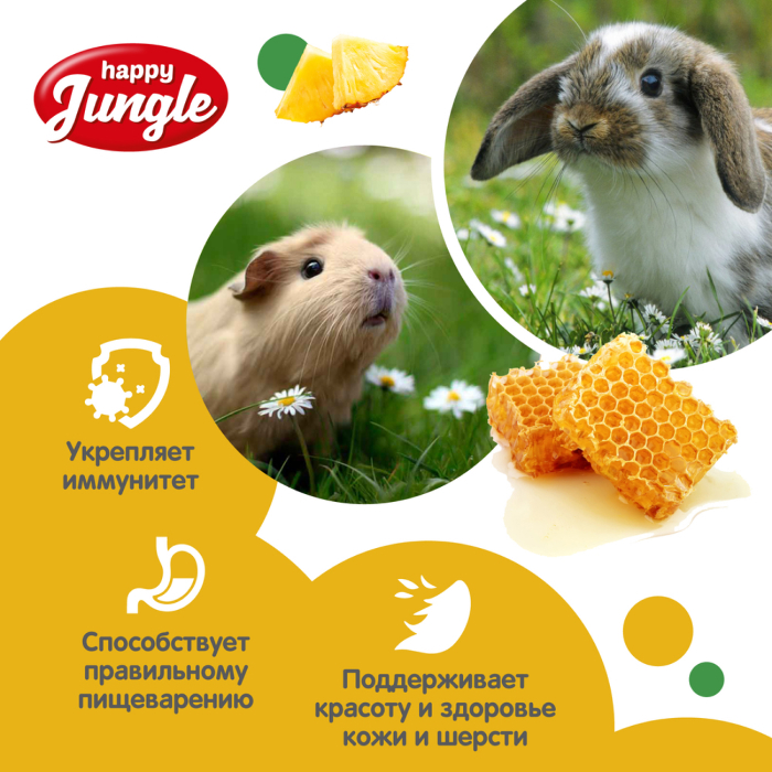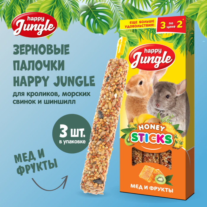 Зерновые палочки Happy Jungle - медовое лакомство для кроликов, морских свинок и шиншилл с тропическими фруктами.