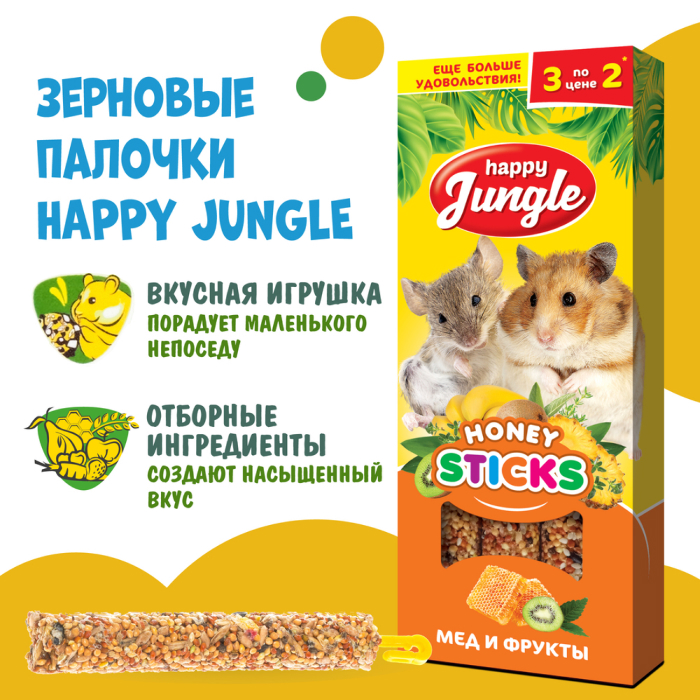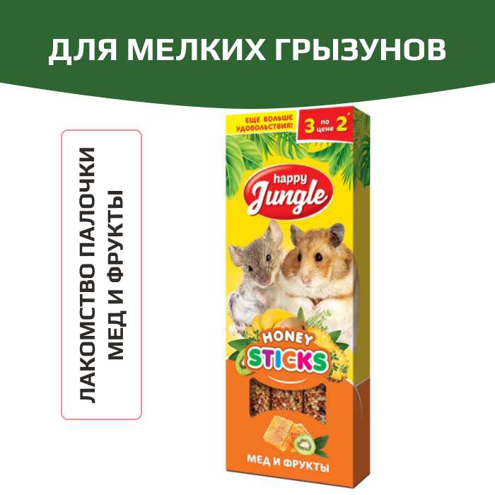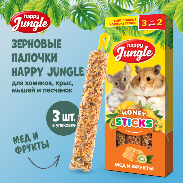 HAPPY JUNGLE Палочки для мелких грызунов мед+фрукты 3 шт.