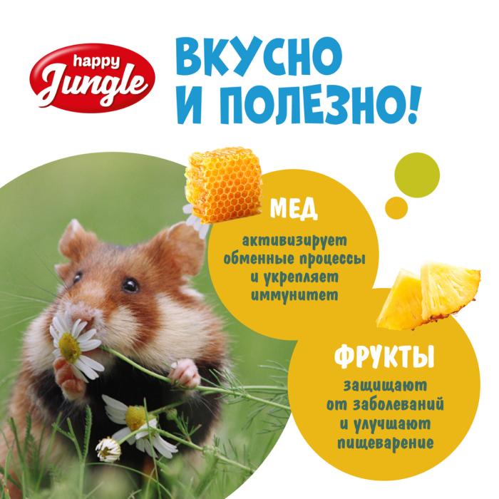 Зерновые палочки Happy Jungle - медовое лакомство для хомяков, крыс, мышей и песчанок с тропическими фруктами.