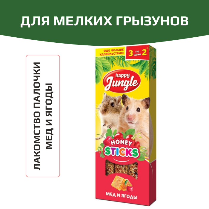 HAPPY JUNGLE Палочки для мелких грызунов мед+ягоды 3 шт.