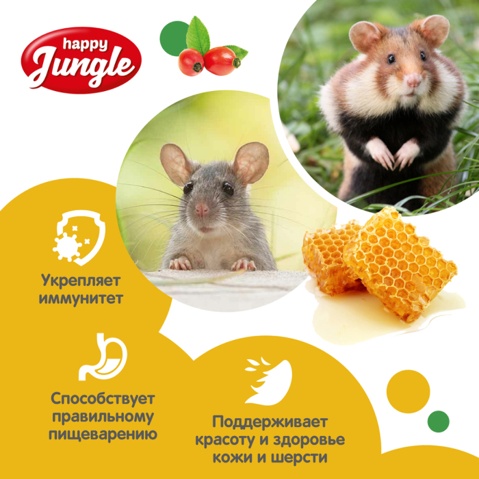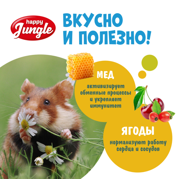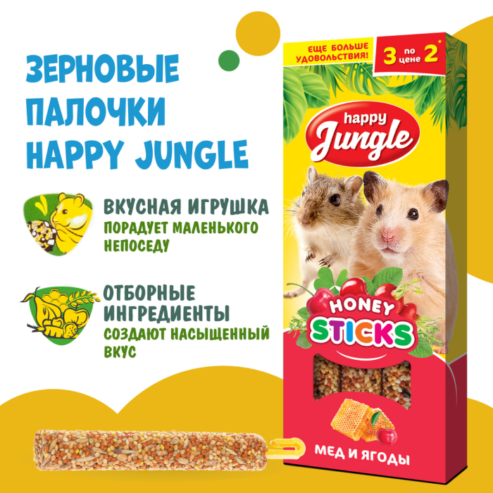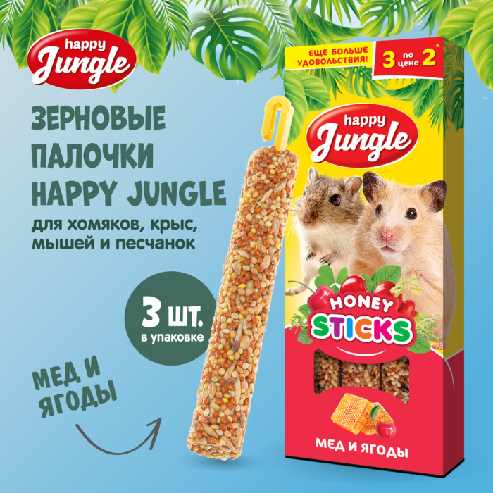 Зерновые палочки Happy Jungle - медовое лакомство для хомяков, крыс, мышей и песчанок с ягодами.
