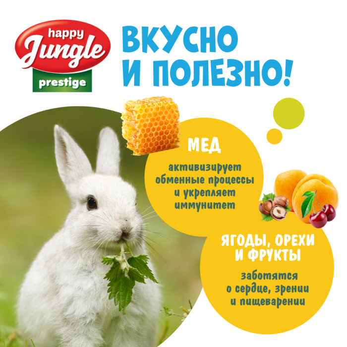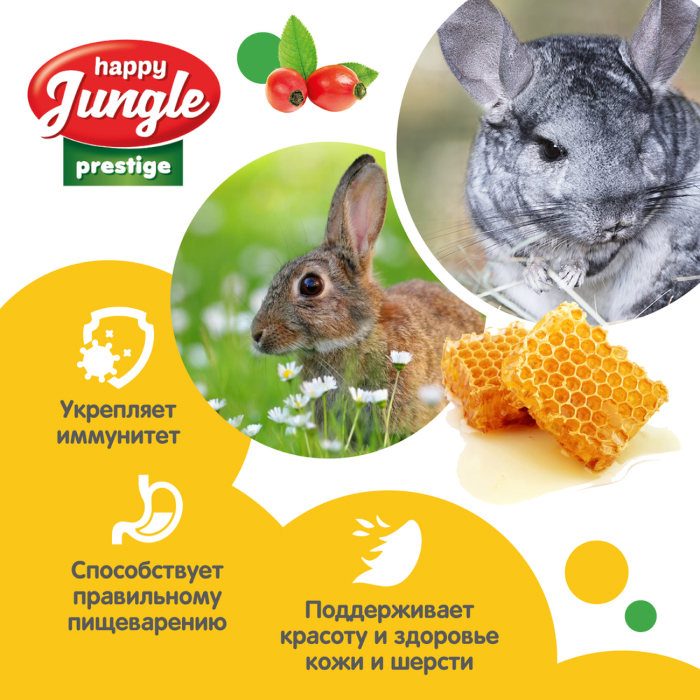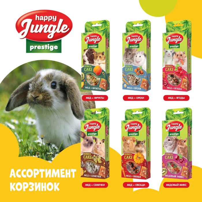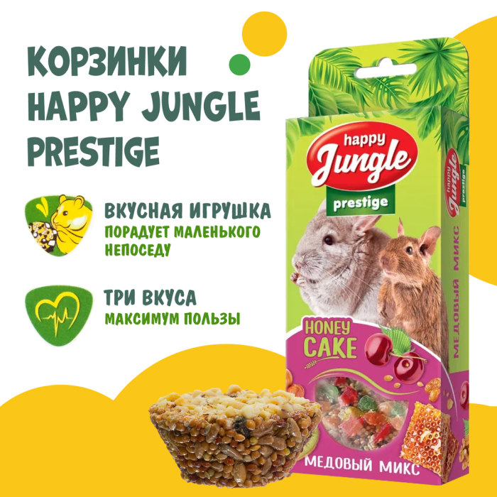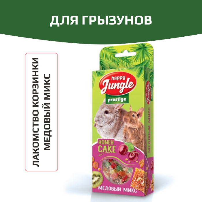 Лакомство Happy Jungle Престиж корзинки для грызунов (медовый микс) сочетают в себе полезные и вкусные ингредиенты, необходимые для активной жизни питомца.