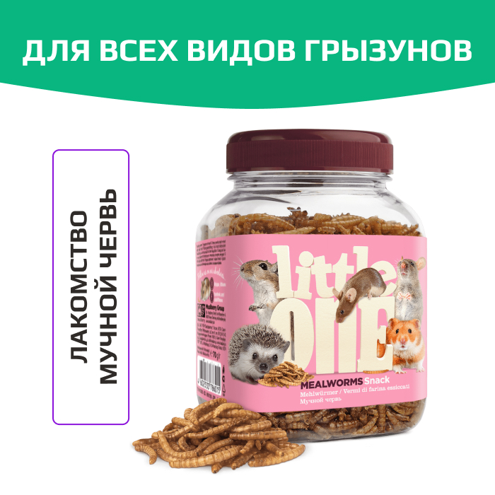 Сушеный мучной червь является питательным дополнительным кормом для всеядных грызунов. Он представляет собой не только их излюбленное лакомство, но и ценный источник необходимого натурального животного белка. Его добавление позволит внести разнообразие в рацион питомца.