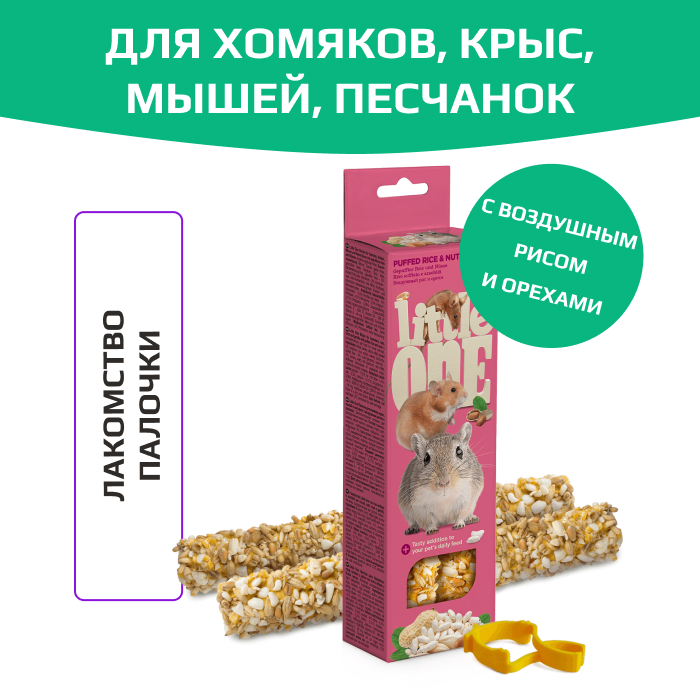 Little One палочки для хомяков, мышей и песчанок с воздушным рисом и орехами.