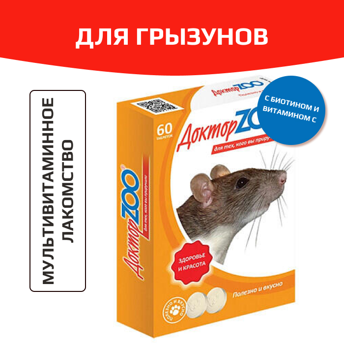 Доктор ZOO Витамины для крыс и мышей с биотином и витамином С.