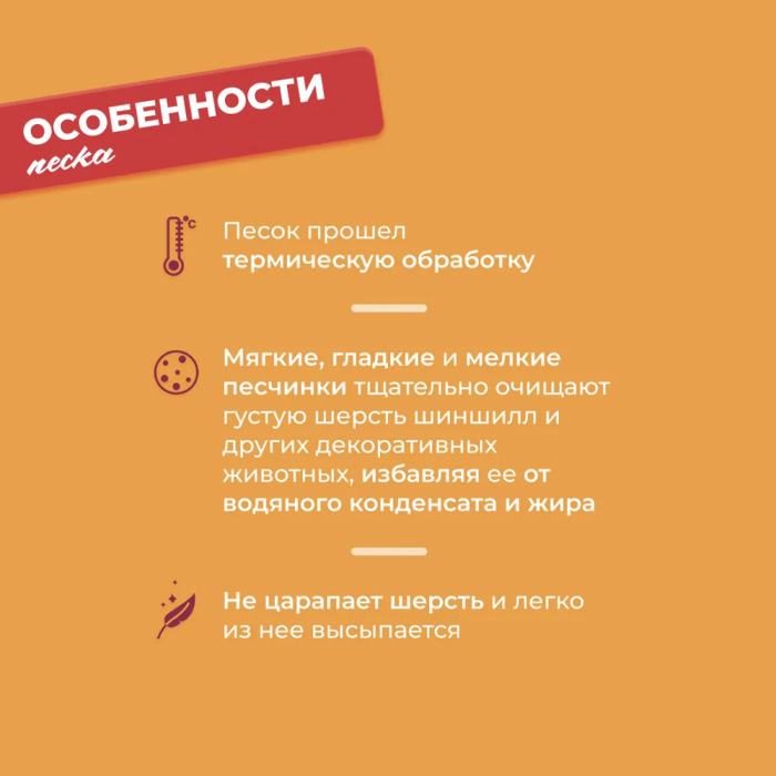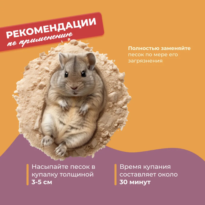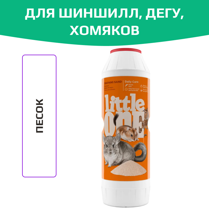 Песок для купания Little One является прекрасным гигиеническим средством для ухода за шерстью животных. Мягкие гладкие и мелкие песчинки тщательно очистят густую шерсть шиншилл и других декоративных животных, избавляя ее от водяного конденсата и жира. При этом песок Little One не царапает шерсть и легко из нее высыпается, обеспечивая пушистую и блестящую шерстку у вашего зверька. Песок прошел термическую обработку.