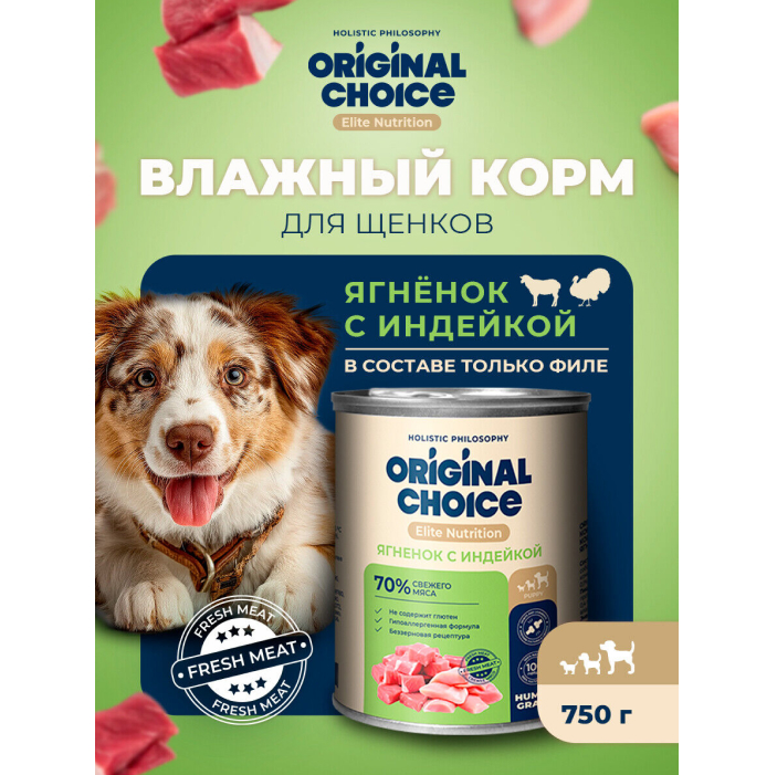 Original Choice Elite Nutrition Puppy влажный корм для щенков всех пород, ягненок с индейкой.