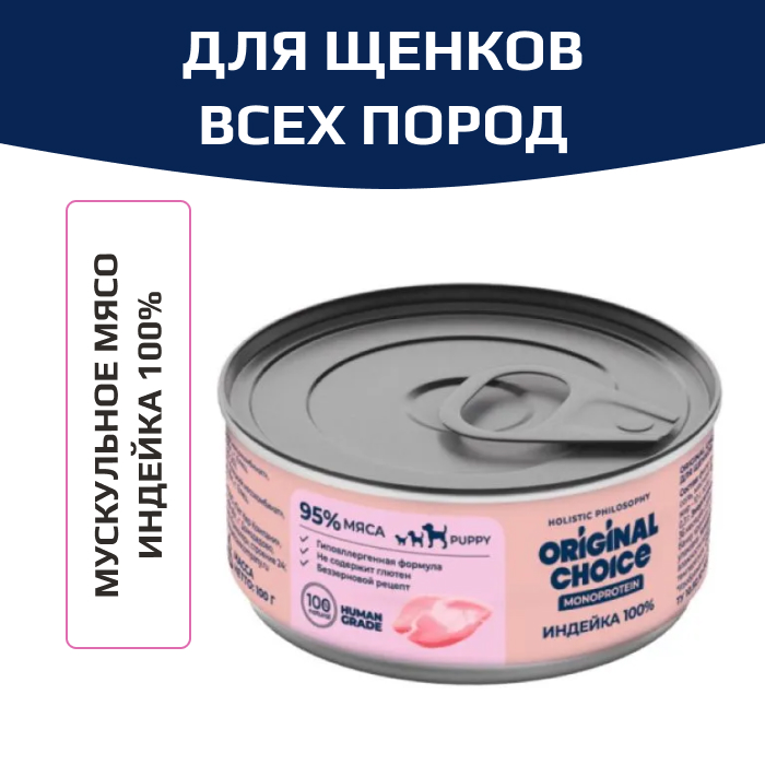 Original Choice Monoprotein Puppy влажный корм для щенков всех пород, индейка, 100гр